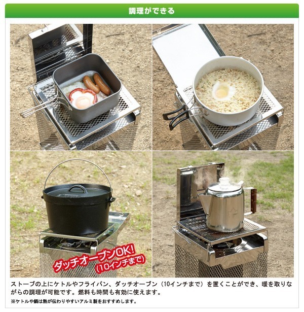 調理もできる、あったかストーブ!風防付き 10インチのダッチオーブンまで使用可能
