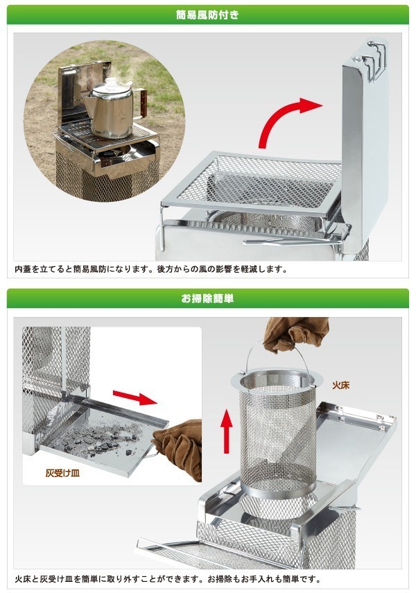 ロゴス LOGOS チャコグリルストーブ 料理もできるあったかストーブ 側面メッシュ構造で炎の熱伝導が伝わりやすい