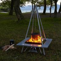 囲炉裏スタイルで吊り鍋料理が楽しめるテーブルセット 焚火や鍋料理が楽しめる