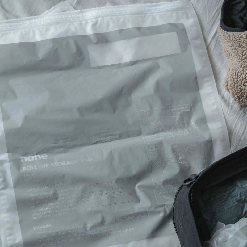 | 旅行はもちろん、ご自宅でも収納に便利なnahe(ネーエ)の衣類用圧縮袋。中が見えづらく手ざわりの良いマット素材です。チャックをして空気を抜くだけで真空状態になる、空気が逆戻りしにくい特殊な製法の優れもの。かさばる衣類は圧縮袋でコンパクトに。1パック3枚入りで、予備で持っていったり一緒に旅行に行くご友人と分けて使っても。 |