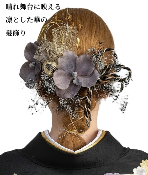 成人式 髪飾り 結婚式 卒業式 袴 高級造花アスカベルベット バンダオーキッド 振袖 グレー/ゴールド/黒/シルバー