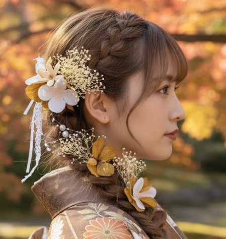 【場面】成人式、卒業式、結婚式、ウェディング、ブライダル、前撮り、後撮り、二次会、七五三(753)に。振袖・ドレス・留袖・浴衣などの装いに合わせやすく、ひとつ結び、ボブ、くるりんぱ、三つ編みなどの髪型にもおすすめです。