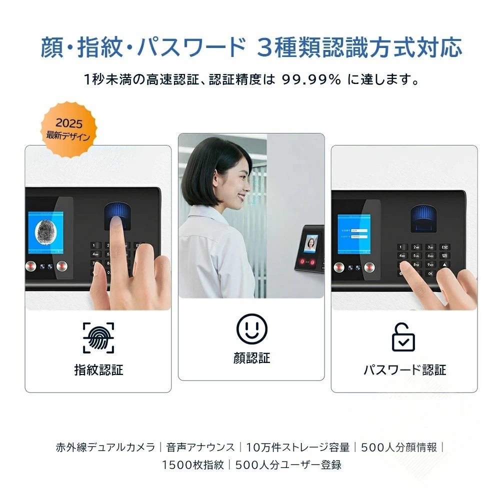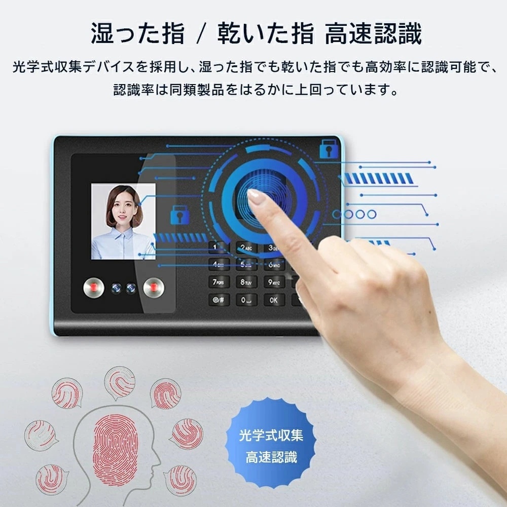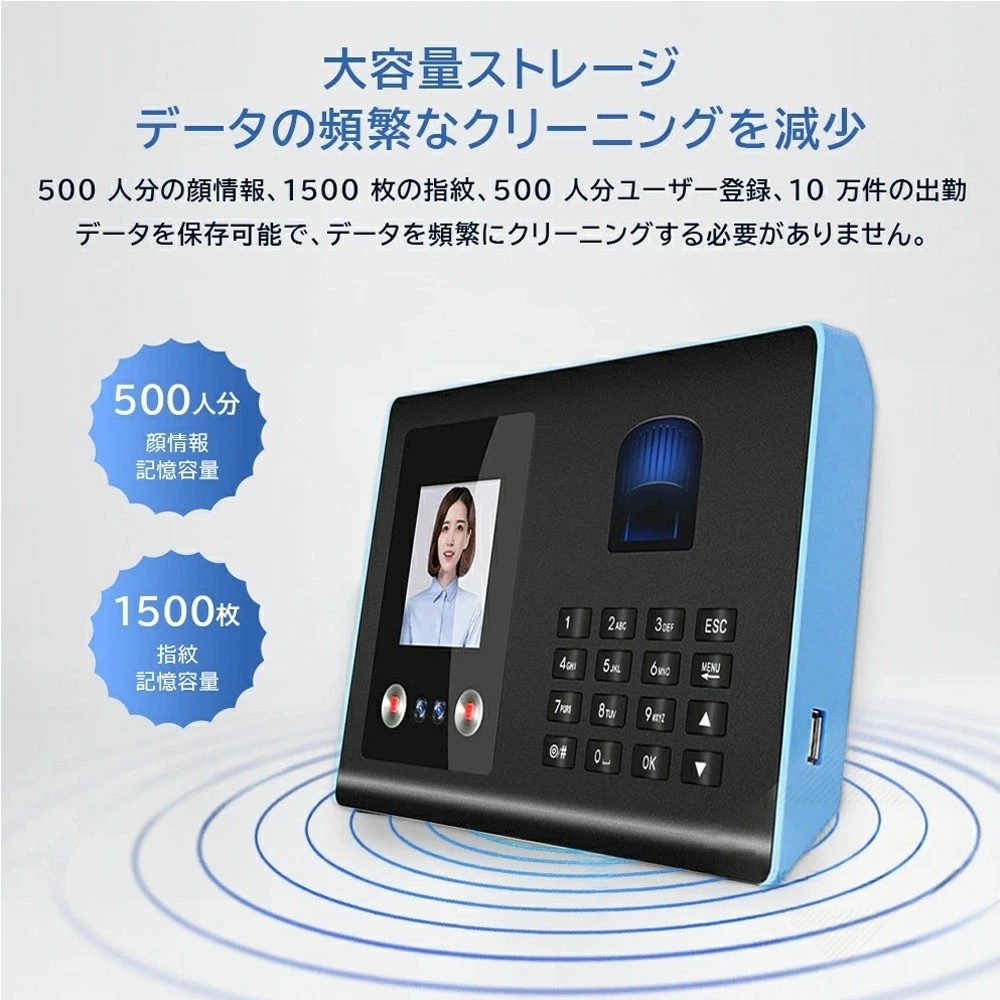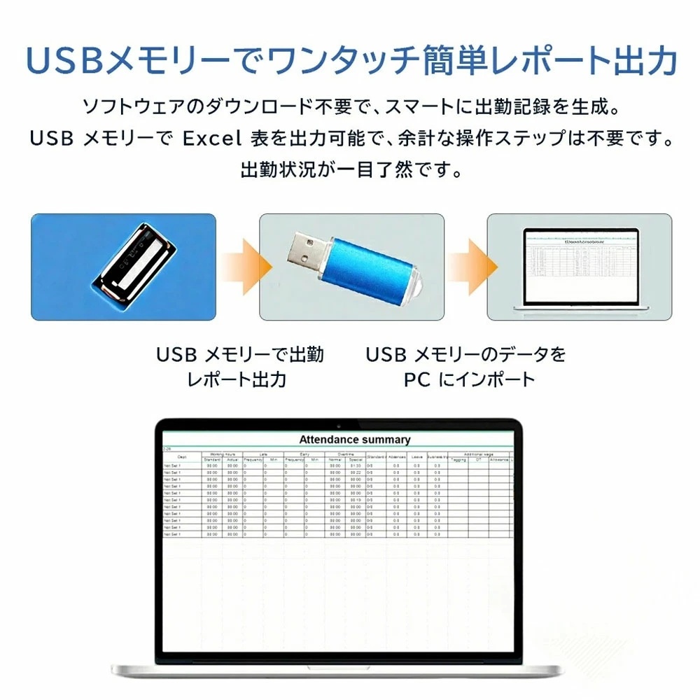 タイムレコーダー 勤怠管理機 顔認証 パスワード 指紋認証 パスワード対応 出勤レコーダー 勤怠レコーダー 電子タイムレコーダー USBデータ管理 自動集計機能