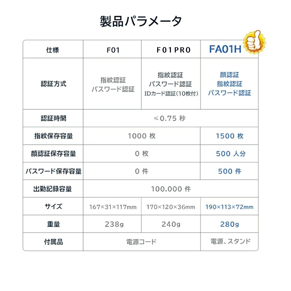 認証方式:指紋/パスワード認証/ID力一ド認証(10枚付)