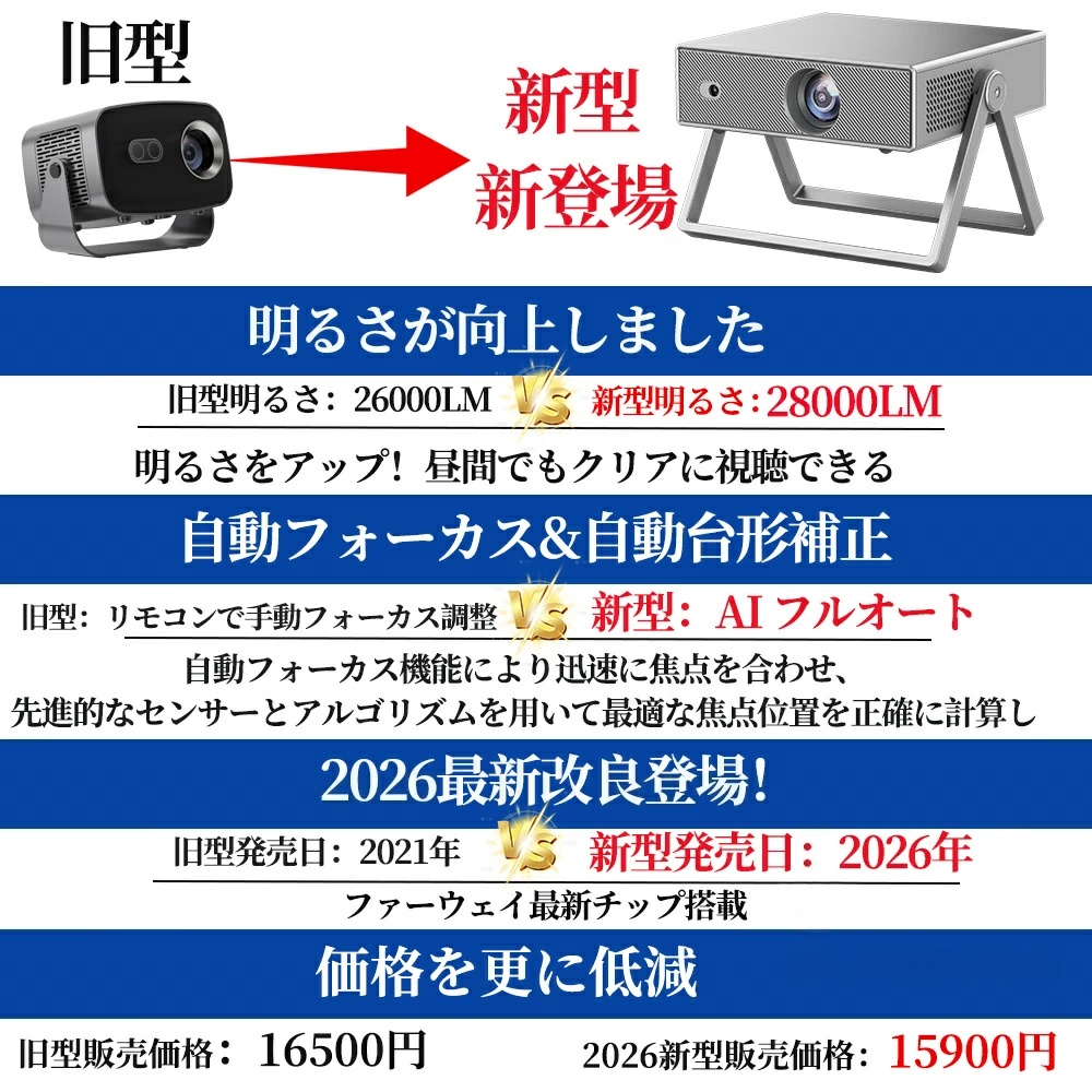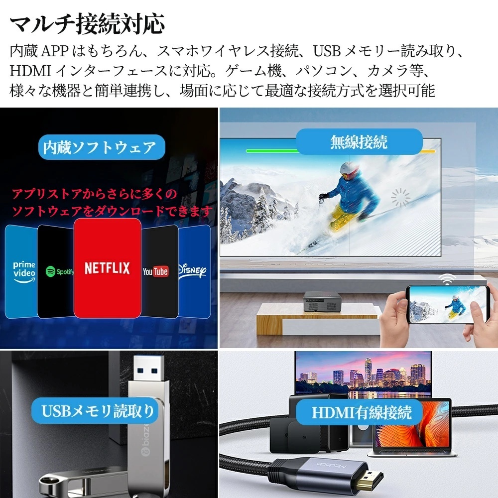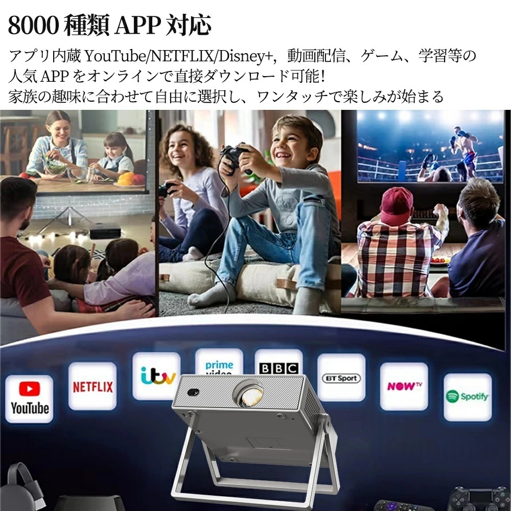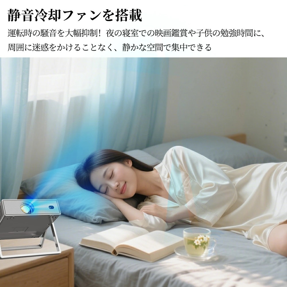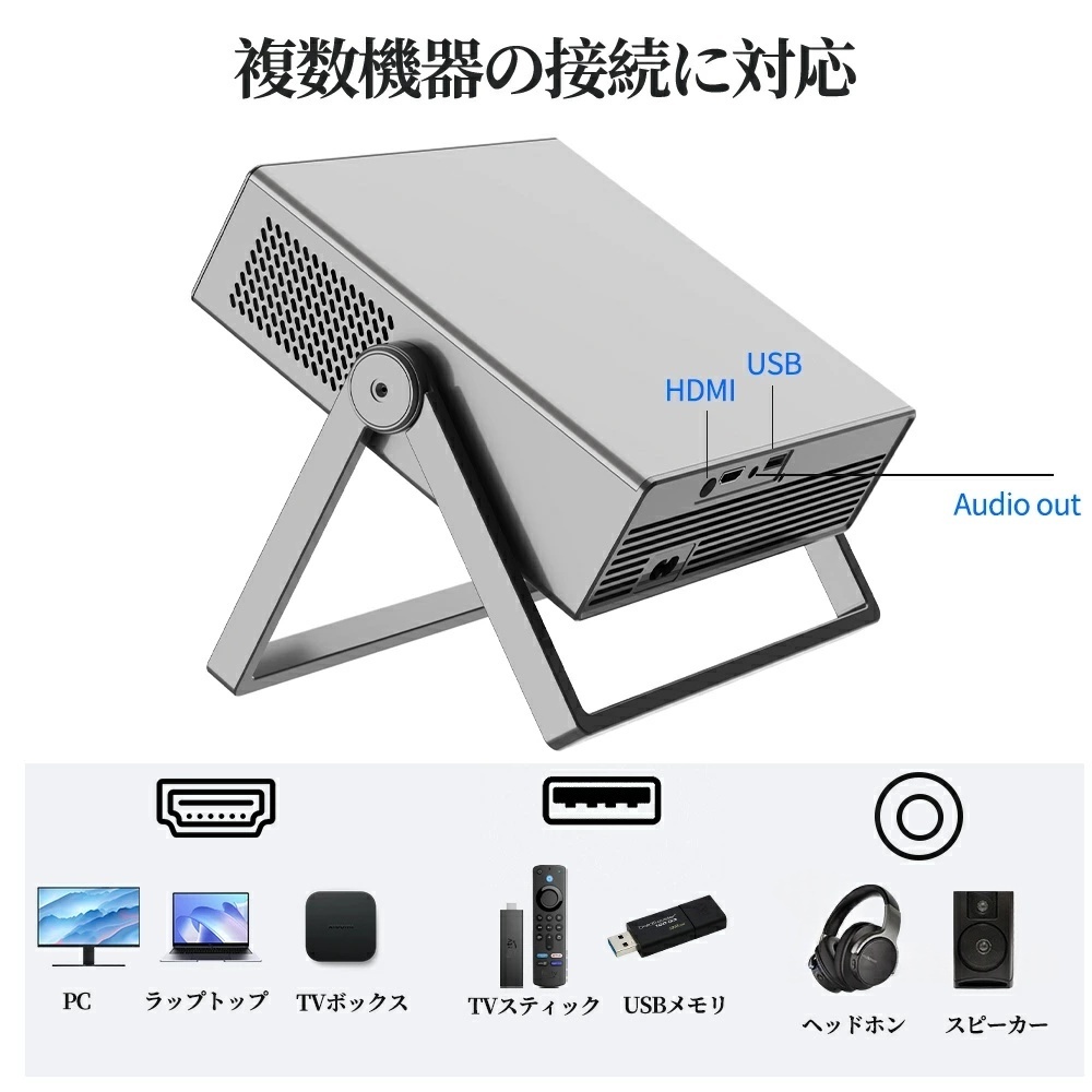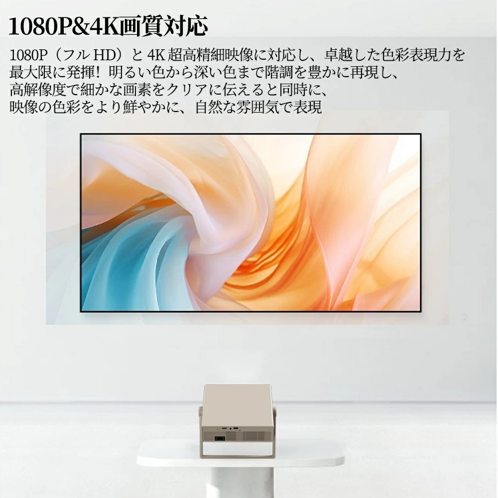 「安いプロジェクターは暗くて見えない」という常識を覆しました。一般的な低価格モデルと比較して輝度を大幅にアップ。 暗い部屋はもちろん、夕方の薄暗い時間帯や、間接照明のある環境でもクッキリとした映像を楽しめます。友人とのホームパーティーや、屋外でのバーベキューなど、多少の光がある環境でも迫力ある映像体験を提供します。
