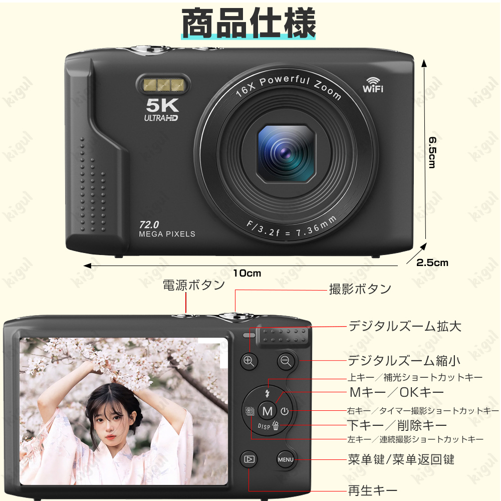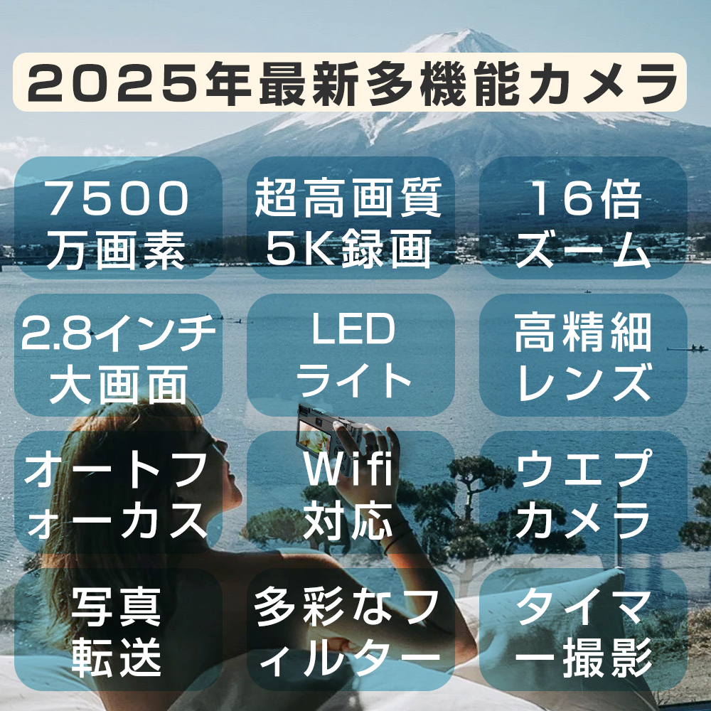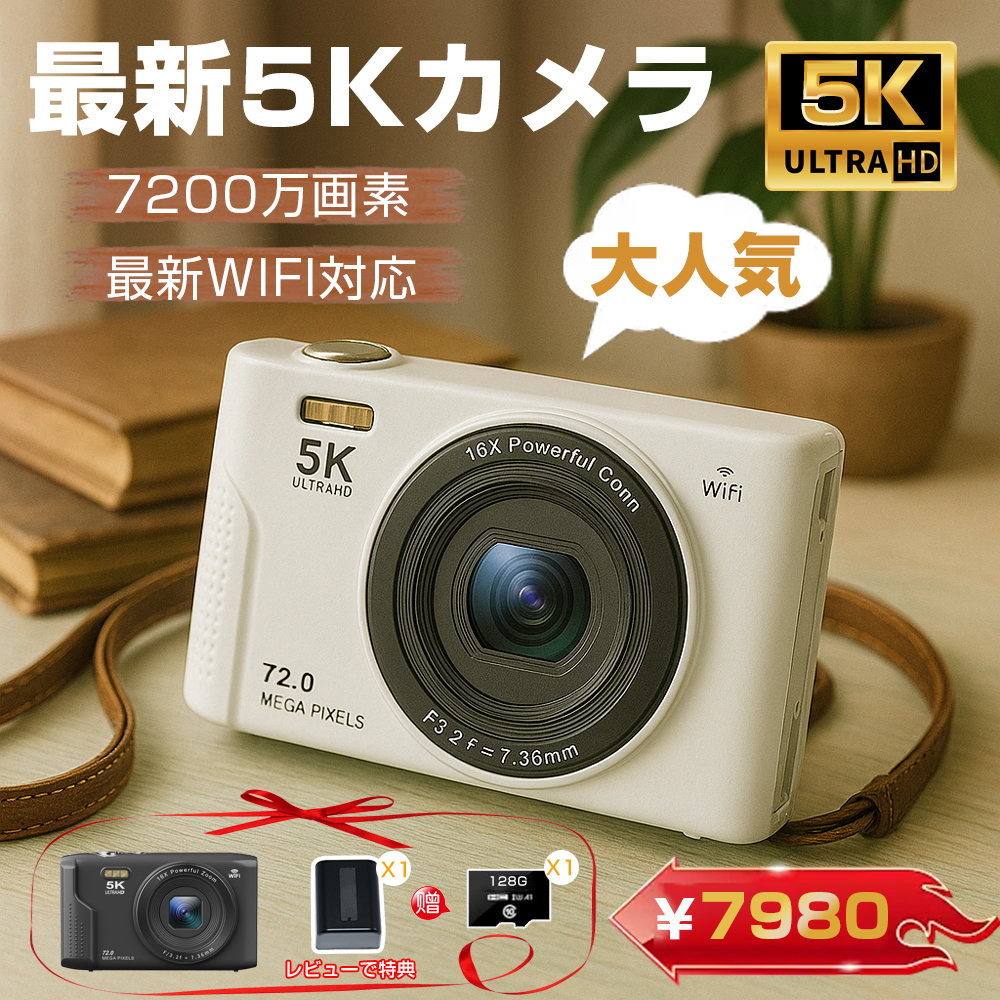 【限定7980円】デジカメ デジタルカメラ 16倍ズーム 5K 7200万画素 高画質 オートフォーカス ビデオカメラ IPS大画面 手振れ補正 軽量 新品 安い 小型 2026