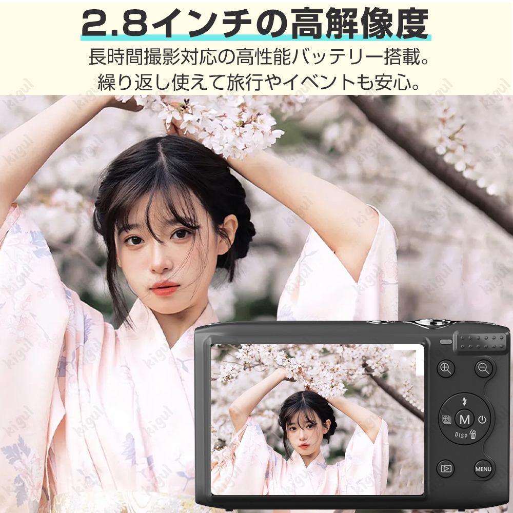 輸入された2.8インチの大画面を採用。高解像度でクリアな画像を表示し、目の疲れを軽減。