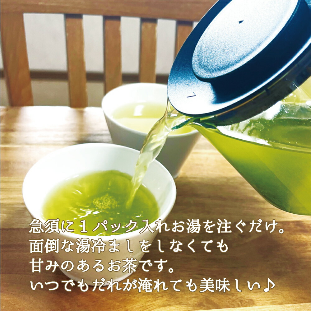 夏は水出しで。冬はホットでどちらでも楽しめます。 (水出し茶)500mlに1パック (温かいお茶)急須に1パックで3人分 |