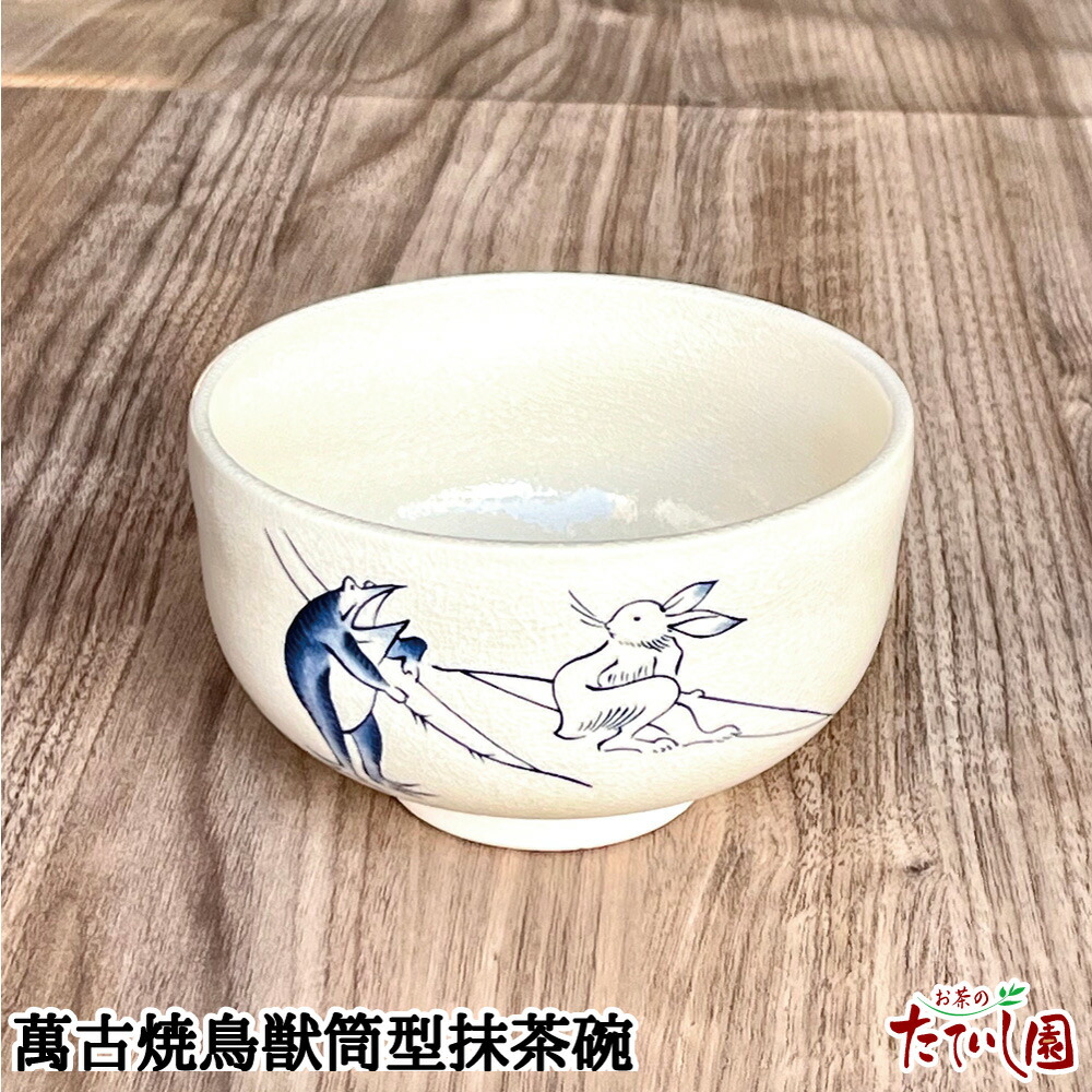抹茶碗 萬古焼鳥獣筒型抹茶碗 (12×7.5cm)
