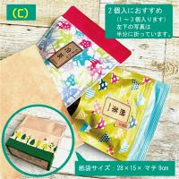 透明ナイロンにお入れします。小さな和風のシールを貼ります。