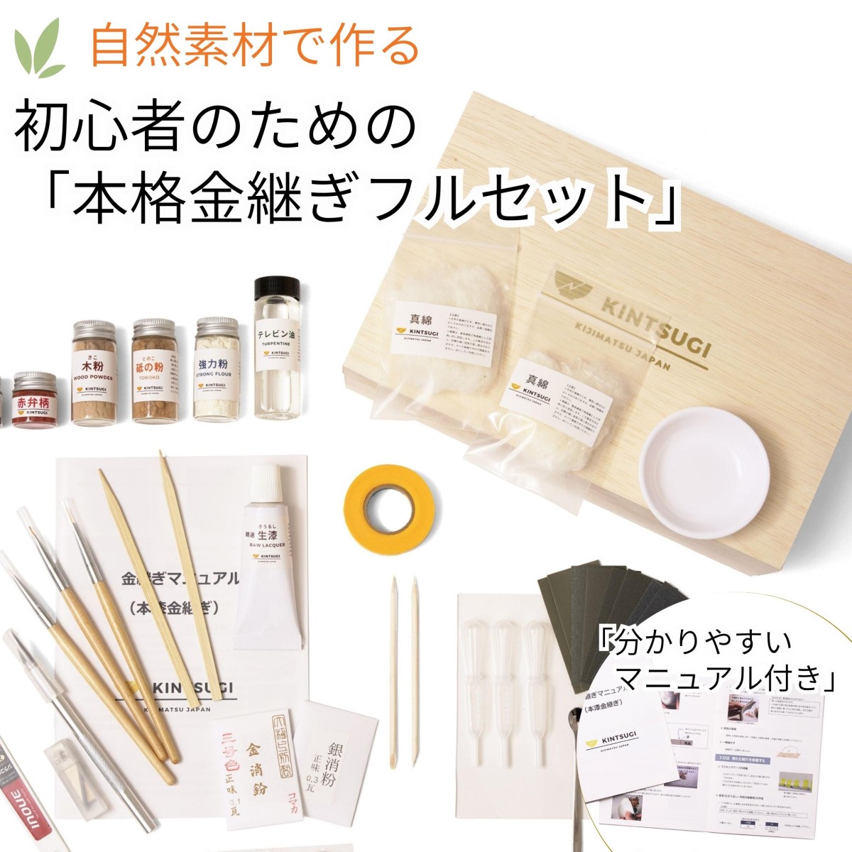 初心者・中級者向け 本格金継ぎ フルセット 純金粉 純銀紛 自然素材使用 金継ぎキット 金継ぎセット 送料無料 【初心者にも分かりやすい丁寧マニュアル付き】