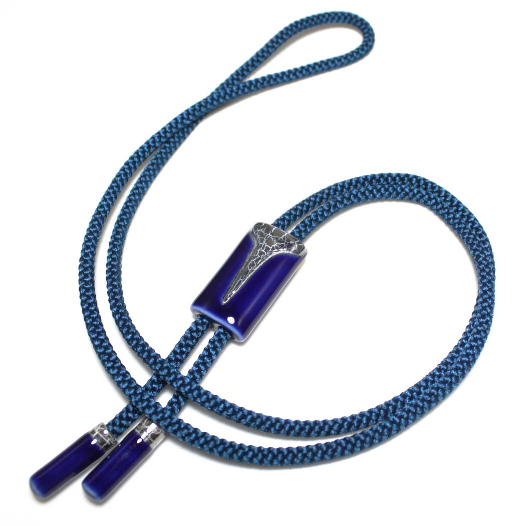 伊万里焼有田焼で知られる陶芸磁器ループタイ。両面デザイン。瑠璃釉白金彩貫入。