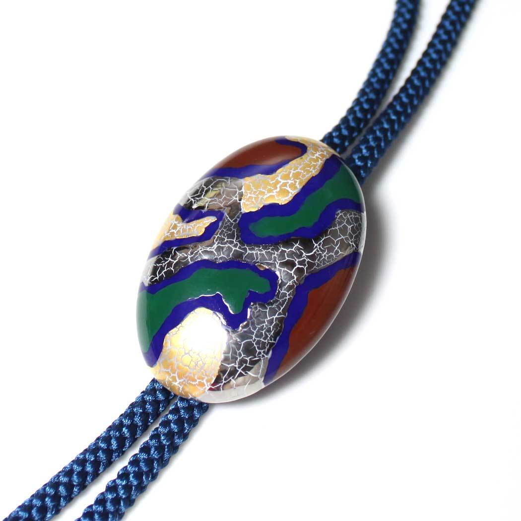 伊万里焼有田焼で知られる陶芸磁器ループタイ。瑠璃釉金彩貫入