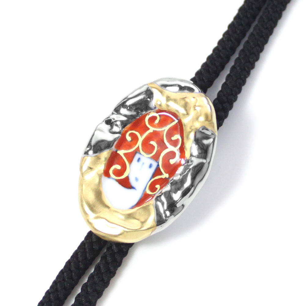 伊万里焼有田焼で知られる陶芸磁器ループタイ。縁金彩唐草人形赤。