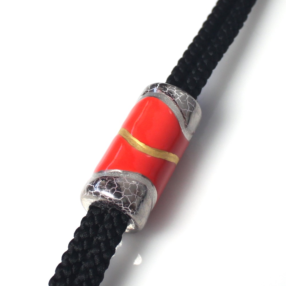 伊万里焼有田焼で知られる陶芸磁器ループタイ。紅赤釉白金彩貫入。