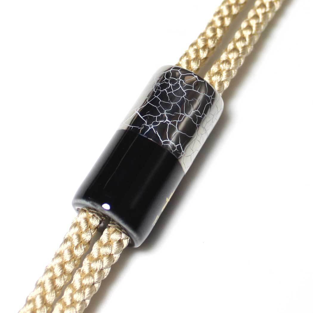 伊万里焼有田焼で知られる陶芸磁器ループタイ。黒釉白金彩貫入。
