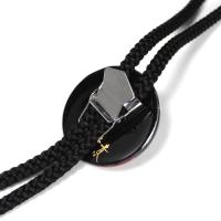 手作り手描き伊万里焼ループタイ ;サイズ41×25ミリ・厚さ13ミリ・重さ約34グラム ;紐 シルック 長さ・100センチ ;裏金具(ストッパー付き)・真鍮(ロジウムメッキ)下がり金具・真鍮 金メッキ・伊万里焼はエメラルドと同等の硬さで傷が付きにくいです。