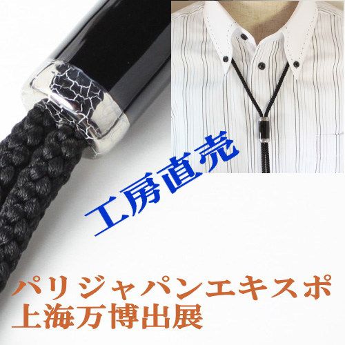 伊万里焼有田焼で知られる陶芸磁器ループタイ。黒釉白金彩貫入。