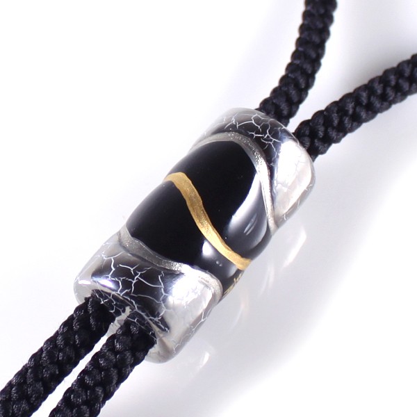 伊万里焼有田焼で知られる陶芸磁器ループタイ。黒釉白金彩貫入。