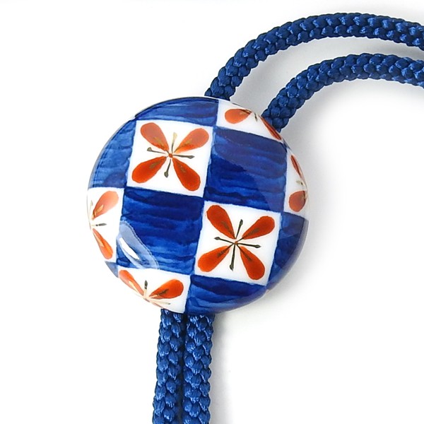 有田焼伊万里焼で知られる陶芸磁器ループタイ。染錦市松花紋様。