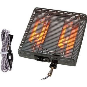 【仕様】・取り替え用500Wクォーツヒーター・中間スイッチ付コード・本体寸法:長さ295×幅290×高さ70mm・重量:1.2kg・定格:AC100V 500W・温度制御:サーモスタット・安全装置:温度ヒューズ密閉式157℃・発熱体:石英管250W×2・卓サイズ:600×600以上、900×900以下、高さ340(mm)・セット内容:ヒーターユニット本体、取り扱い説明書、中間スイッチ付きコード、取付用ネジ×4、ヒートン・クレオ販売株式会社