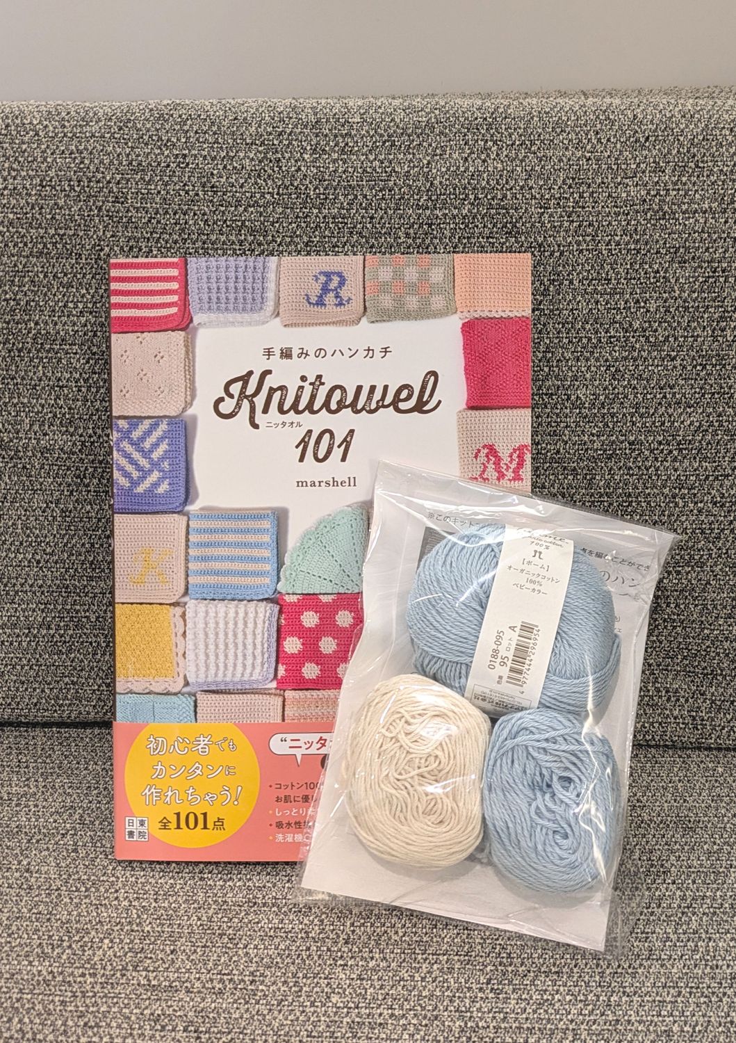 今、編みたい、買いたい、贈りたい本No. 1『手編みのハンカチ ニッタオル101』&ニッタオルが1枚編めるキットのセット。
