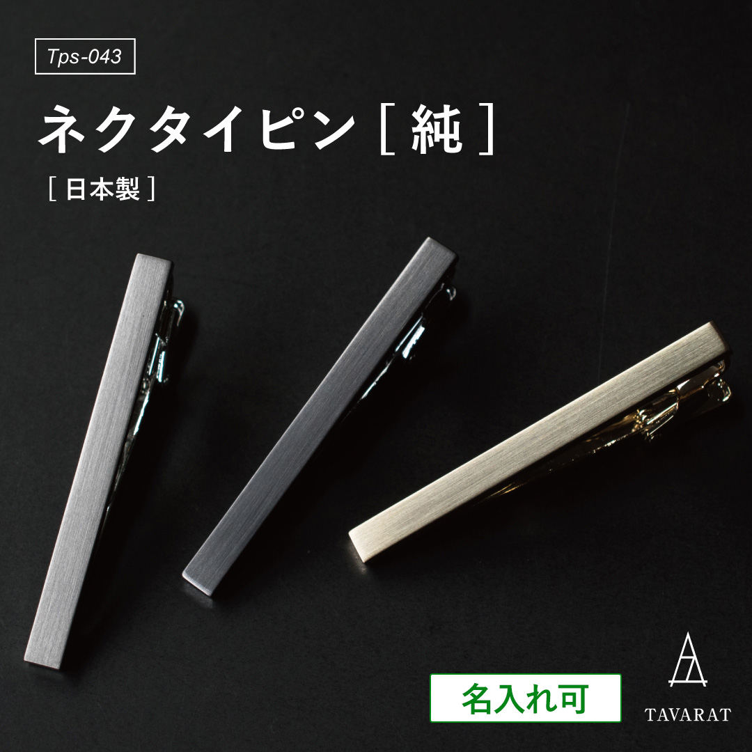 ![]() ![]() 真鍮製ネクタイピン「純」 「どんなネクタイにも合う」を追求したタイピン「純」一見すると単純な作りに見えますが、拘りを持って仕上げられた「純」は高品質な印象を与えてくれます。 またネクタイだけでなく、使う人を選ばない落ち着いた質感は、胸元から誠実さを引き立たせてくれる、そんな一本です。 ![]() ![]() ![]() 毎日使いたい。 ネクタイを選ばずデイリーにお使いいただけます。凛とした佇まいは、スーツの着こなしにより一層緊張感を与えてくれるのではないでしょうか。![]() ![]() 貴金属類は見る角度や光の当たり方によって色の見え方が異なります。 特にブラックシルバーは光が当たりにくい角度にあってはより黒に近く、光の強い場所ではよりシルバーに近い見え方をし、この製品は場所による角度の違いも相まって非常に様々な表情を作り出します。 ![]() 無駄のない形 できるだけ装飾をなくしたフラットなデザインは、シンプルであるだけに着用したときの潔さや、しっかりとした存在感を感じられます。![]() 作り込んだ細部 丁寧にバリとり(表面の研磨)をした真鍮金具にメッキを施し、サテーナ加工と呼ばれる表面加工で仕上げています。指輪などの貴金属にも施されることのあるこの艶消しを施すことで、綺麗な光沢が落ち着いた印象です。 タイピン先端の裏側にはタバラットの刻印入りです。 ![]() タイピンの留め具にはワニ口タイプのものを採用しております。しっかりとネクタイを留めてくれるので、知らぬ間に外れてしまったという心配もなくなります。(写真はTps-113カラードピンです。) ![]() ワニ口式と、クリップ式の2タイプ ネクタイピンには主に本製品のようなワニ口式と、よりシンプルな形状のクリップ式がございます。上記バナーから商品一覧をご覧いただけます。 ![]() 名入れオプションで 名前やイニシャル、メッセージなどをオプションで刻印することも可能(12文字まで)。ご自身用にはもちろん、大切な方のお祝いや、記念日のギフトとしてもおすすめです。