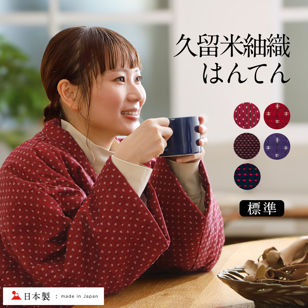 昔ながらの本格手作りはんてん。 織物の産地として知られる福岡は久留米。戦後から始まった綿入り半纏作りは、今や全国の製造シェアの95%に及びます。名産織物の久留米絣にちなみ、昭和35年頃から「久留米はんてん」と呼ぶ様になりました。 ひと針ひと針に心を込めた手作業にて綿を詰め、縫製し、厳しい検品を受け合格した製品だけが出荷されています。中綿には最高級品を使用しているので、太陽に干せば何度でもふっくらと膨らむのが特徴です。 どこか懐かしい暖かみのあるデザインで、ゆったりとした着心地の良さや、ダウンの様な保温性も兼ね備えており、日本の物作りの質の高さを感じます。 こちらは紬織の柔らかさと風合いが、久留米はんてんの伝統技術を感じられる一品です。 |