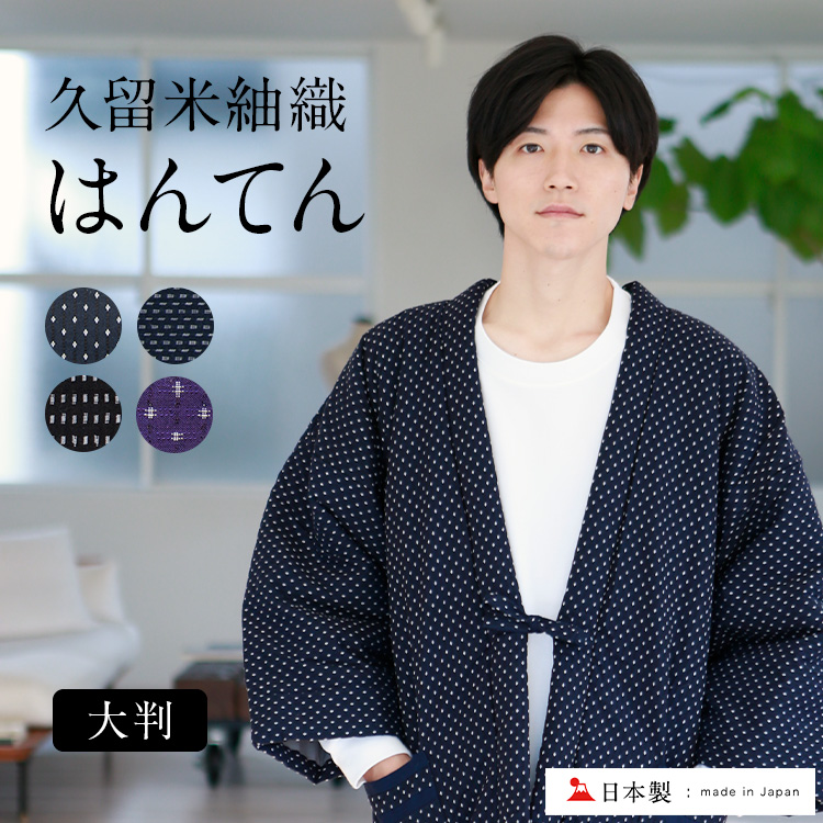 日本製 メンズ はんてん 大きいサイズ 久留米織 おしゃれ 綿 綿入れ半纏 久留米 綿入り 袢纏 大判 どてら ちゃんちゃんこ 男性 冬 防寒 紺