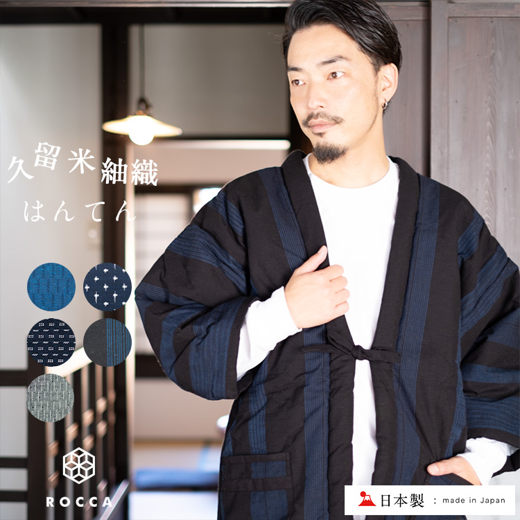 日本製 久留米織 はんてん メンズ 綿入れ半纏 久留米 男性 部屋着 ルームウェア おしゃれ 暖かい 綿100% ROCCA 標準 冬 防寒