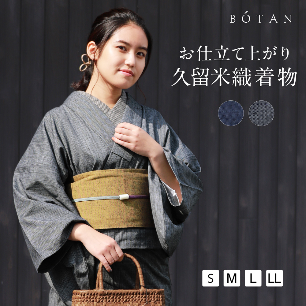 久留米織 木綿着物 日本製 レディース 単衣 着物 洗える お仕立て上がり 綿 BOTAN 20代 30代 40代 50代 大人 カジュアル おしゃれ 街着