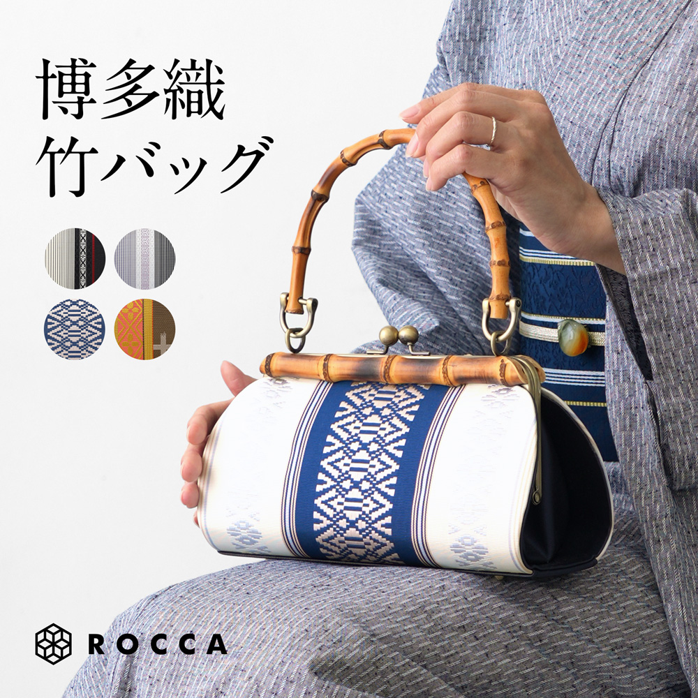 博多織 竹バッグ 日本製 和装バッグ 帯地 正絹 献上柄 レディース 手提げバッグ ROCCA 六花 着物 女性 高級 大人っぽい 博多織り カジュアル 国産 竹