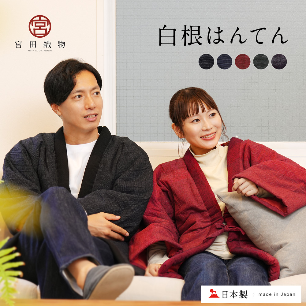 宮田織物 白根 はんてん 日本製 半纏 メンズ レディース 男女兼用 久留米織 綿入り おしゃれ久留米 袢天 どてら ちゃんちゃんこ 暖かい 夫婦 部屋着