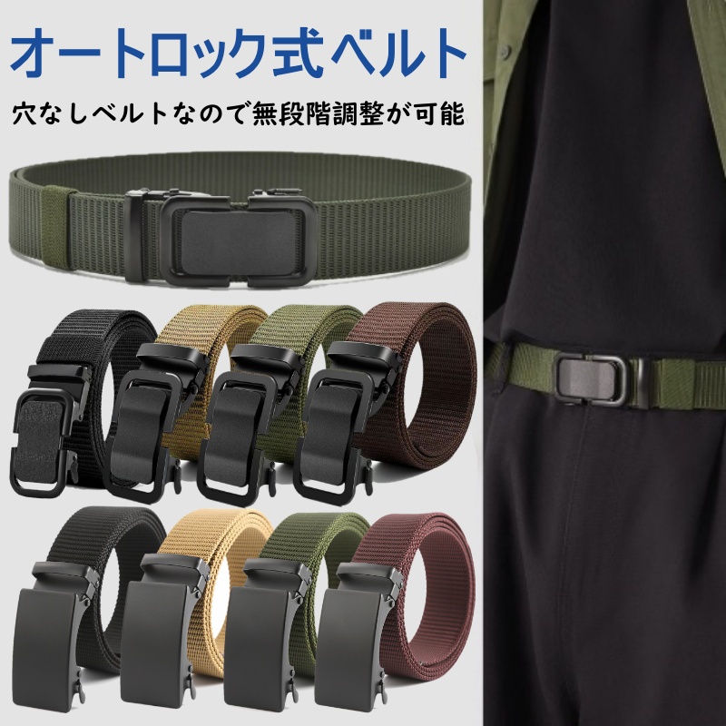 オートロックベルト ナイロン 高耐久 フリーサイズ メンズ 作業用 ナイロンベルト ミリタリー カーキ ベージュ ブラック ブラウン 大きいサイズ