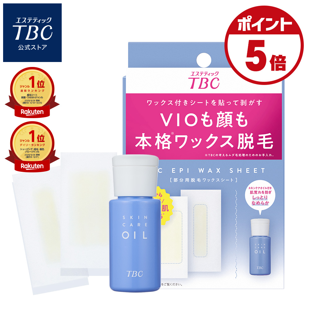 「TBC エピワックスシート」は、ワックス付きシートを貼って剥がすことで根元からムダ毛を抜き去る「脱毛ワックスシート」と「スキンケアオイル」のセット商品です。