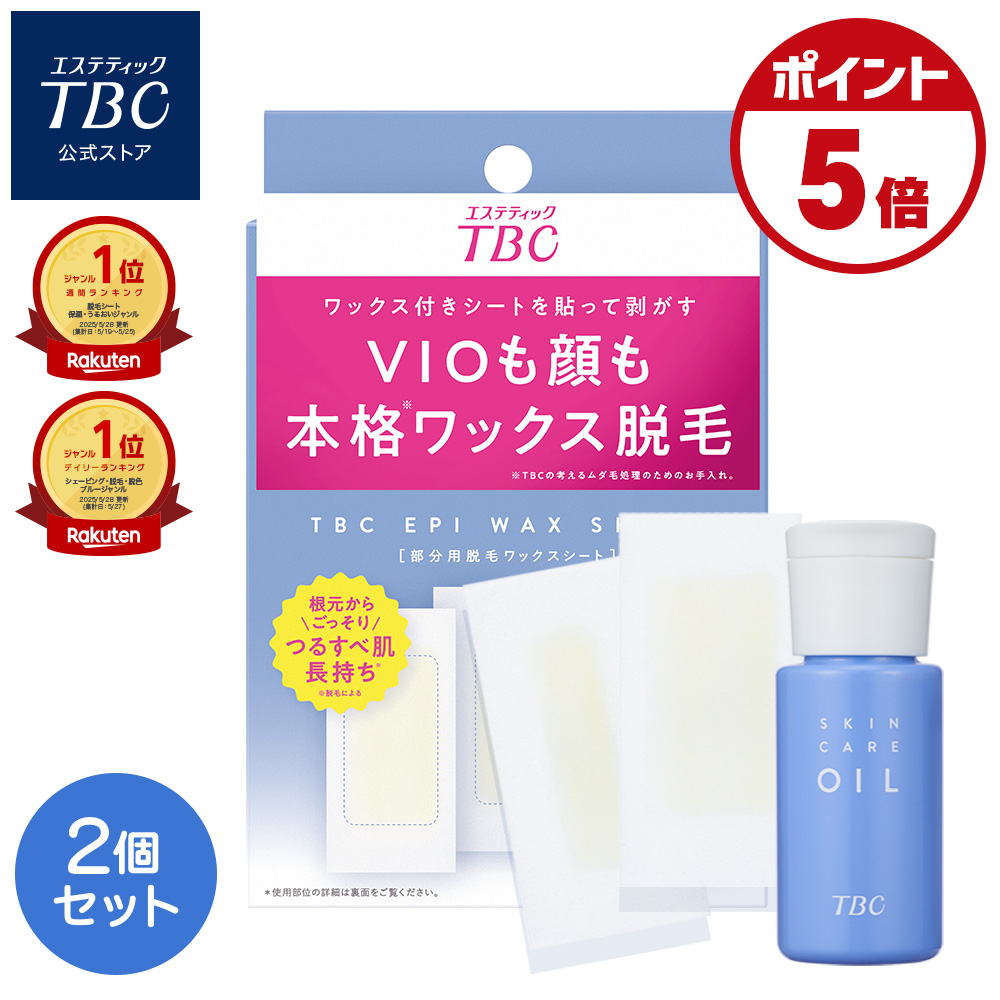 「TBC エピワックスシート」は、ワックス付きシートを貼って剥がすことで根元からムダ毛を抜き去る「脱毛ワックスシート」と「スキンケアオイル」のセット商品です。