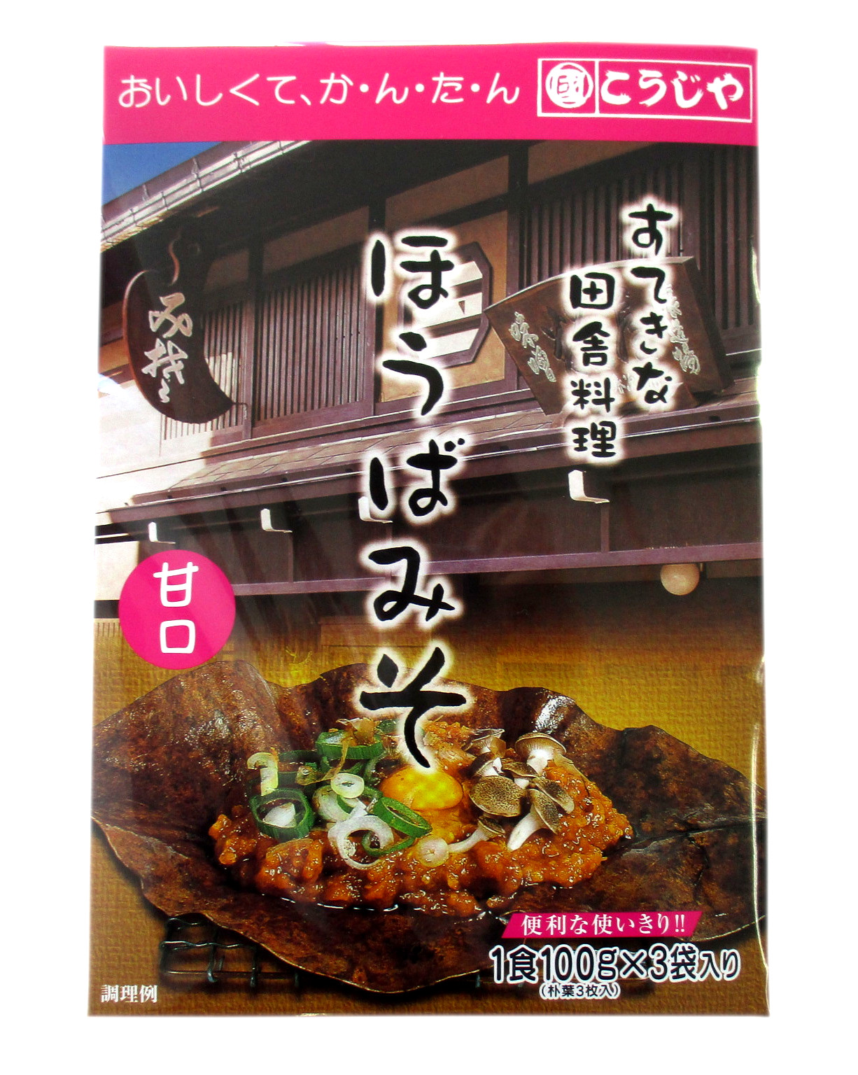 | 名称 | 朴葉みそ | | 販売者 | (有)糀屋柴田春次商店 | | 内容量 | みそ300g(100g×3袋)・朴葉3枚 | | 賞味期限 | 製造から約6ヶ月 | | 保存方法 | 直射日光を避け、冷暗所で保存 | | 原材料 | みそ(米、大豆、食塩)、砂糖、還元水あめ、昆布エキス、酒精、調味料(アミノ酸等 | | 商品説明 | 昔も今も朴葉みそは大切な副食として酒の肴として大いに親しまれております。