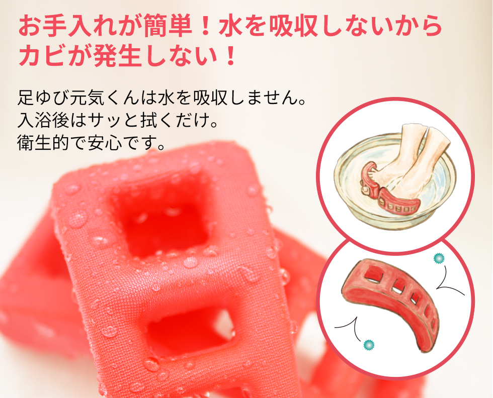 足ゆび元気くんは水を吸収しません。
