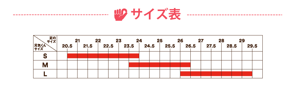 サイズ:S(20.5〜24cm程度)、M(23.5〜27cm程度)、L(26〜29.5cm程度)