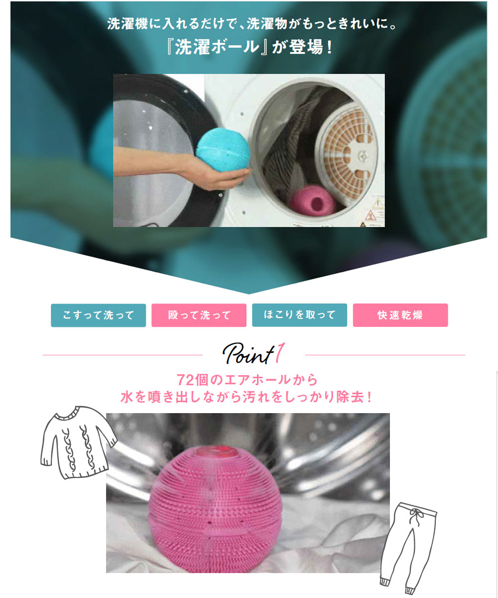 通常、洗濯するだけでは落としきれなかった汚れ…洗濯ボールがあれば、さっぱりキレイに落ちます。
