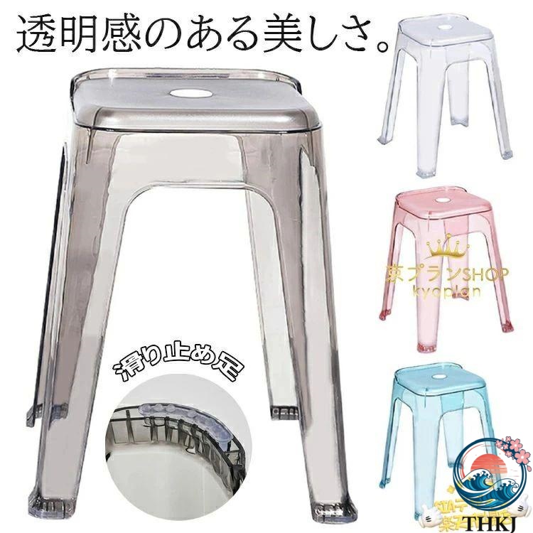 風呂 椅子 高め 透明 バスチェア お風呂椅子 クリア 風呂イス 介護用品 バススツール シャワー チェア 背もたれなし 軽量 安定 滑り止め足 通