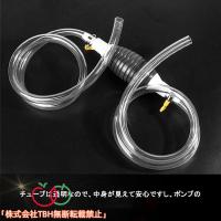 手動式のハンドポンプでポンプを数回握ると、ポンプ側に矢印表示されていて矢印の方向にオイルやガソリン、水槽の水を抜く事も可能です。