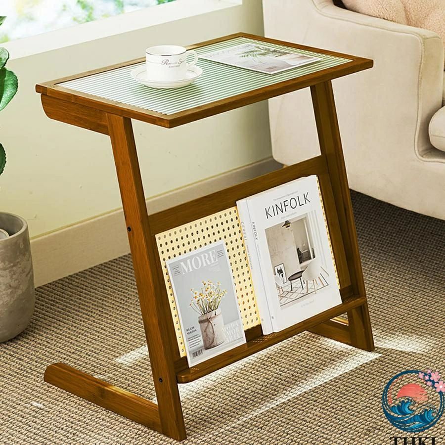 【多層収納】収納テーブルは美しく実用的です。 Z字型のデザインは使いやすさを向上させ、便利で実用的です。デスクスタンドは幅55cm、奥行き35cmなので、上の棚には物を、上の棚には鉢植えや目覚まし時計のリモコン、下の棚には本などを置くことができます。