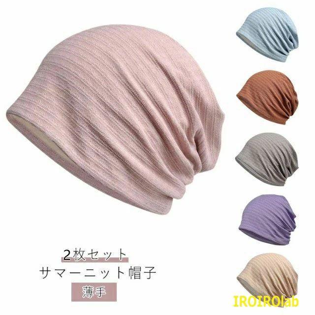 かわいい オールシーズン 2枚セット 綿 サマーニット帽 ニットキャップ メッシュ編み 2枚セット ワッチキャップ ニット帽 夏 春夏 春用 メン