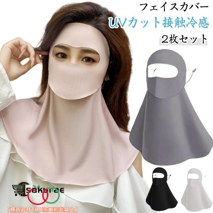 TBH2枚組 UVカット フェイスカバー マスク 顔全体 日焼け対策 紫外線対策 息苦しくない 接触冷感 ネックカバー UPF50+ 日よけ帽子 熱中症対