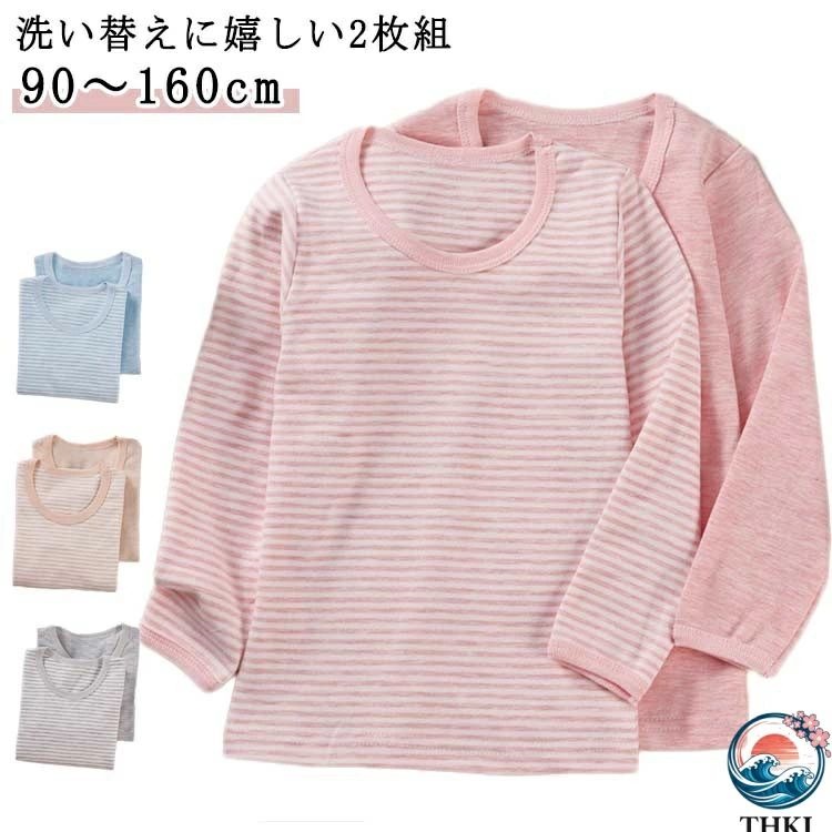 ジュニア 小学校 コットン ロンT 2枚セット 通学 キッズ 長袖 Tシャツ 肌着 無地 子供