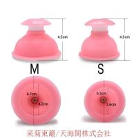 S 4.5*5.5cm M 4.5*6.7cm■使用方法1.気になる部分につけます。2.中心を押すと、中の空気が抜けて付着します。3.吸引時間は1回1分から10分程が目安です。4.吸引が終わったら、ボディクリームなどでもみほぐします。