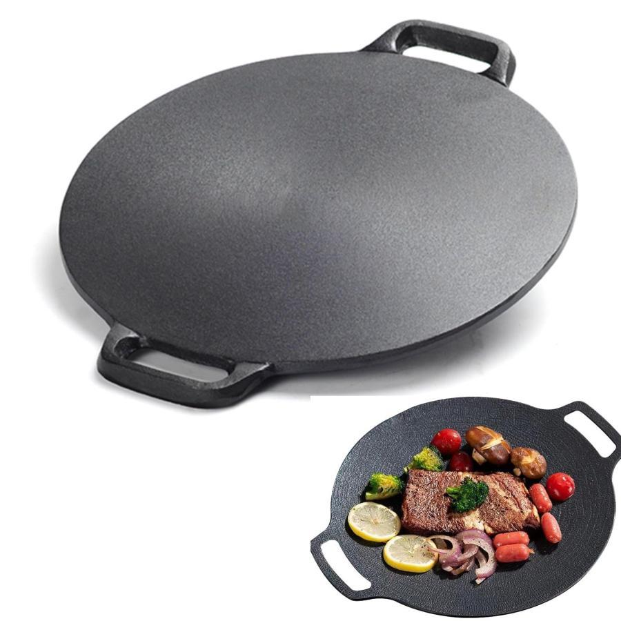 マルチグリドル グリルパン フライパン 直径28 30 32 34 38cm 鋳鉄 クレープパン 6mm極厚、バーベキュー 鉄板 丸形 焼き肉プレート 黒鉄パン グリル鍋 BBQ 家庭