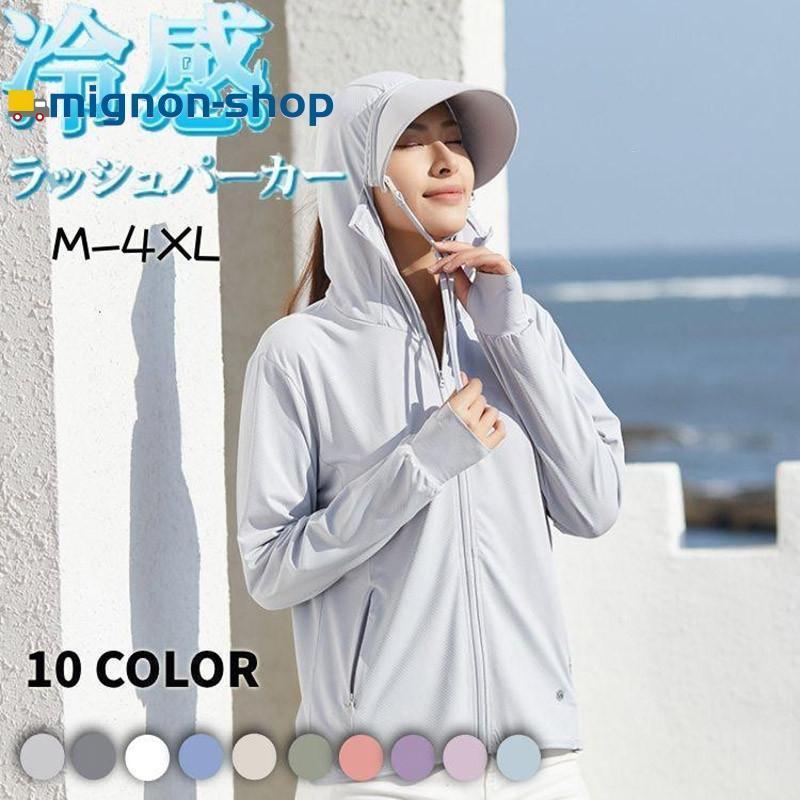 ラッシュガード パーカー 接触冷感素材 -5℃ レディース 長袖 アウター UV カット 指穴 つば取り外し あご紐 吸水速乾 日焼け防止 紫外線対策