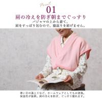○パジャマの上から着ても、肩をすっぽり包むので、寝返りを妨げません。